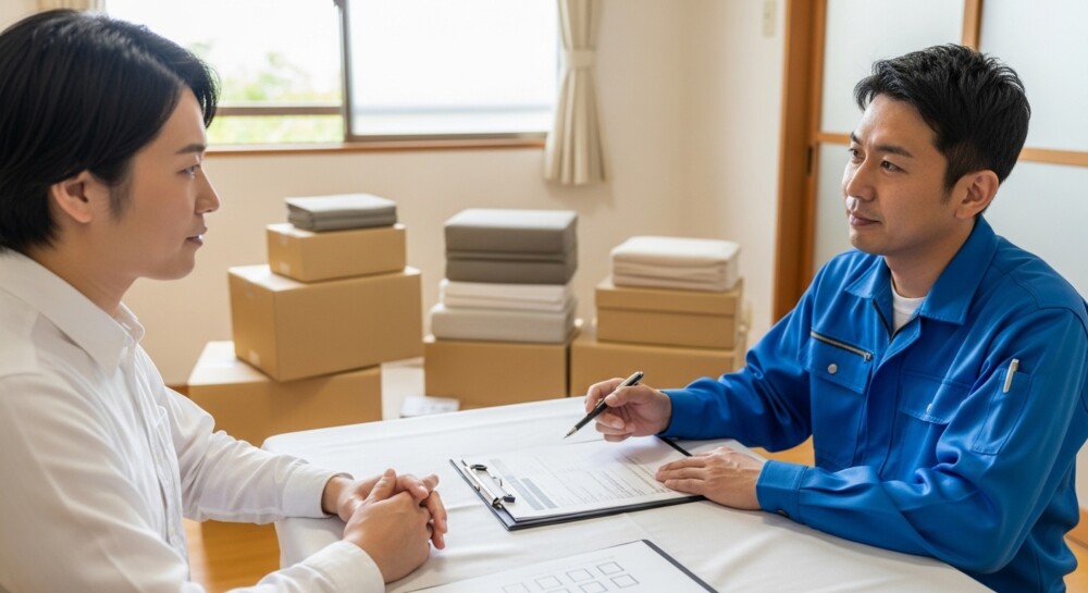現地で状況を確認し、その場または後日、家財の量や搬出ルート・作業員の人数などを踏まえた正式な見積書が提示されます。