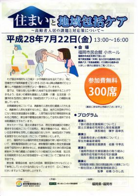 当日の内容は「住まいと地域包括ケア」と題して、高齢者入居の課題と対応策について、以下の方の講演を行います。