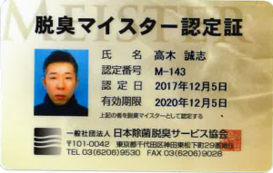 レリック中部東の高木も同様に、全講義を真剣に向き合い、無事、認定ラインに達し、脱臭マイスターとして認定頂きました。