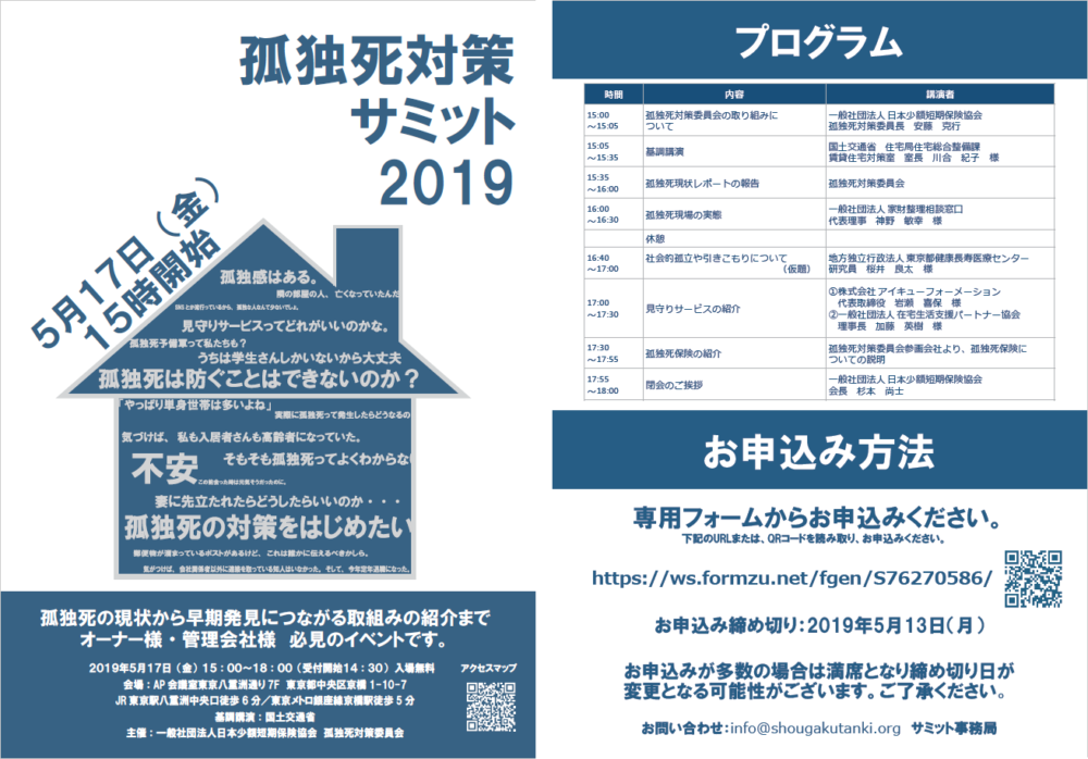 « 孤独死対策サミット2019で講演させて頂きます。
