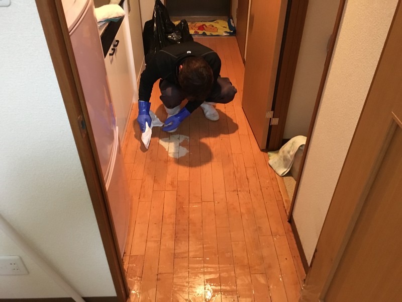 お亡くなりになられていた場所は、1Kの廊下でお亡くなりになられており、血液体液が広がってしまっている状態でした。