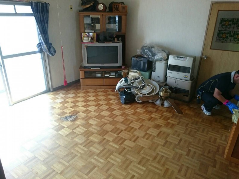 住民の方は、一時病院へ入院されることとなり、身内の方が室内の状態を初めて見て、凄惨な現状に驚かれ、HPでいろいろ業者を探されていたそうです。